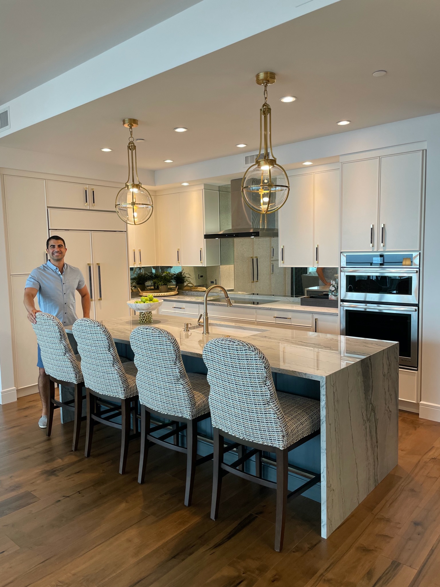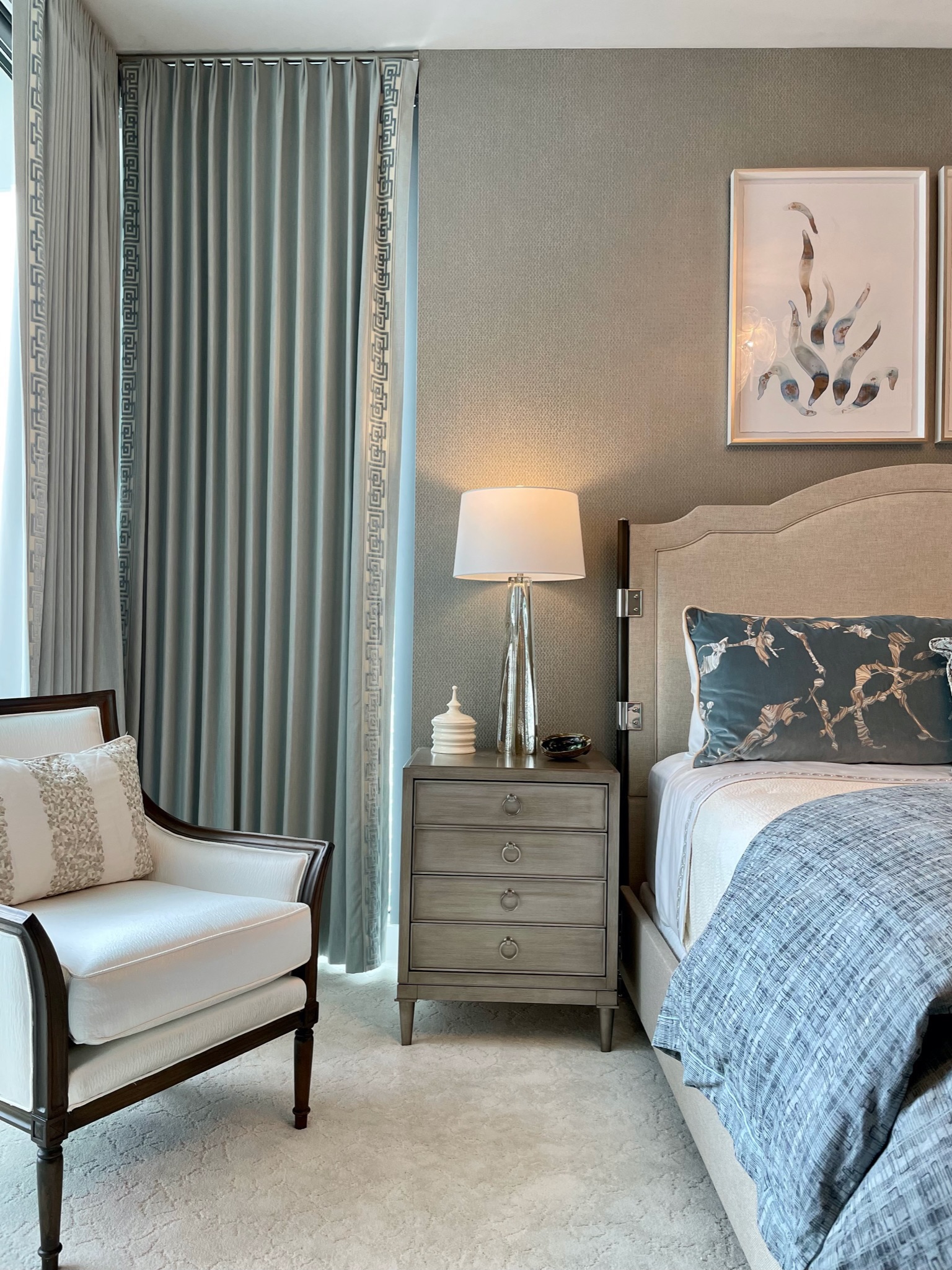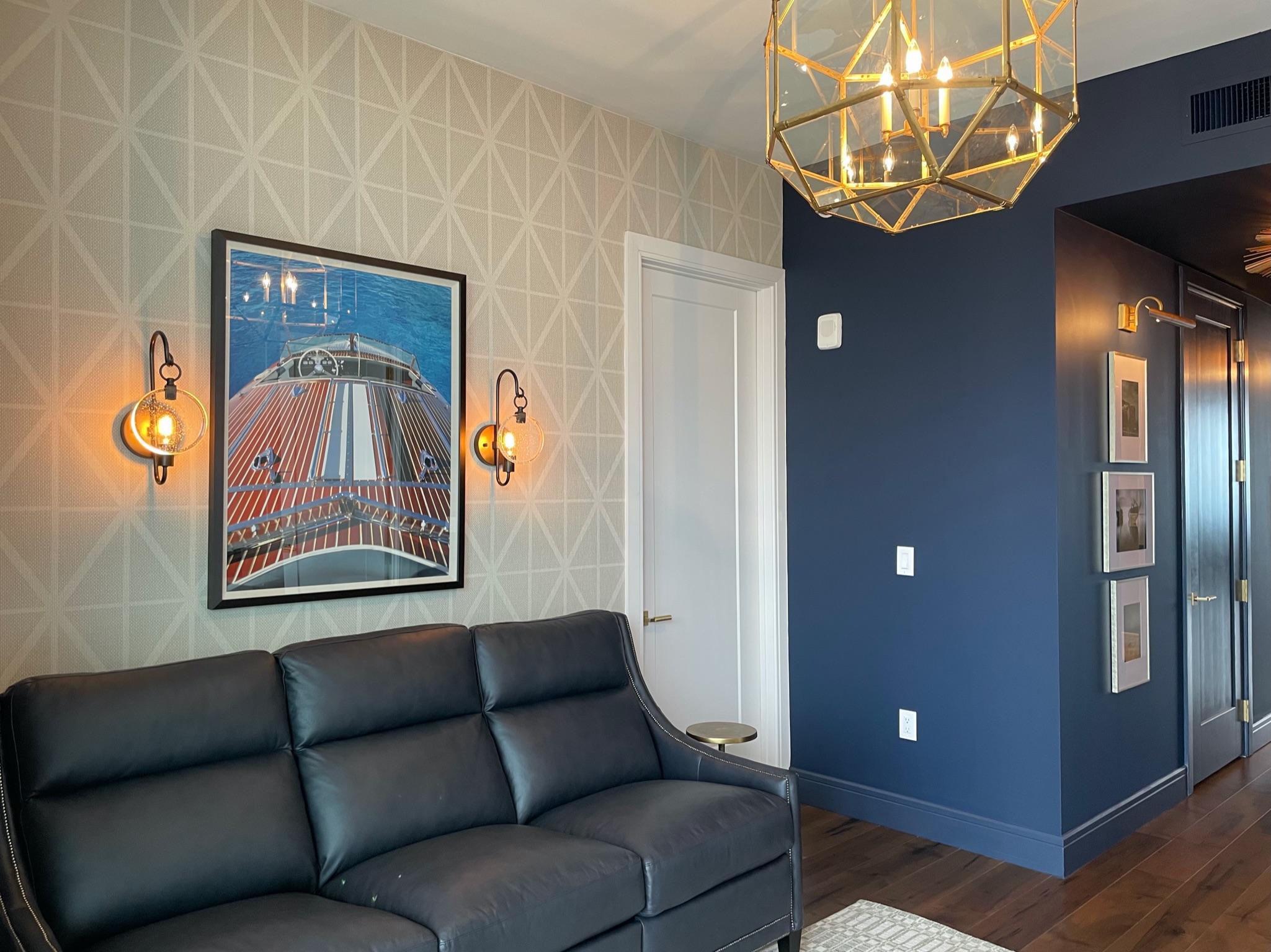 This luxurious high-rise residence was transformed into a calming yet sophisticated space that reflects its waterfront setting. Thoughtfully curated furnishings, layered natural textures, and dramatic lighting elements offer a cohesive flow from room to room. A tranquil color palette grounds the space, while artful moments and custom millwork reflect the personality of its owners. The result is a refined retreat with a lighthearted edge—designed for effortless everyday living and entertaining.